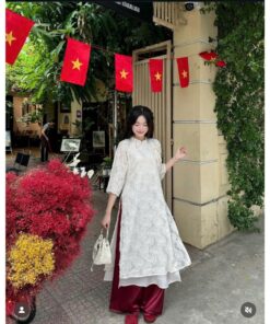 Rập áo dài dáng suông nhẹ, tay loe cổ chân, cso thể may 2 lớp hoặc 1 lớp – dây kéo sau.