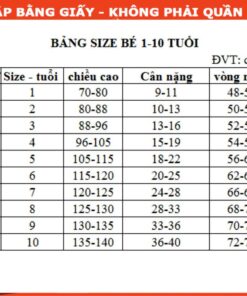 | Size | 1 tuổi, 10 tuổi, 11 tuổi, 12 tuổi, 12- XS, 13, 2 tuổi, 2_3XL, 2-3XL, 2LX, 2XL – áo, 2XL – quần, 2XL – Quần suông, 2XL_3XL, 2XL-3XL, 2XL-áo giả vest 1lớp, 3 tuổi, 3-4XL, 3XL – Quần suông, 3XL-áo giả vest 1lớp, 4 tuổi, 40-50kg, 45-55kg, 4XL, 5 tuổi, 50-60kg, 55-65kg, 55-70kg, 5XL, 6 tuổi, 60-70kg, 7 tuổi, 8 tuổi, 9 tuổi, L – áo, L – quần, L_XL, L- 60-70kg, L- áo giả vest 1 lớp, L- Quần suông, L-XL, M – áo, M – quần, M – Quần suông, M_L, M- 50-65kg, M- áo giả vest 1 lớp, S – 45-55kg, S – áo, S – quần, S – Quần suông, S_L, S_M, S_XL, S- áo giả vest 1 lớp, S-L, S-M, Size 2XL, Size 3XL, Size L, Size M, Size S, Size XL, sz M, XL – áo, XL – quần, XL- Quần suông, Xl-2XL, XL-3XL, Xl-áo giả vest 1 lớp, XS, XS – 40 – 50kg, XS-S, 1, 10, 11, 12, 2, 2XL, 3, 3XL, 4, 5, 6, 7, 8, 9, L, M, S, XL |