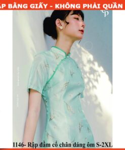 – Rập được ôp lên vải và cắt. Dài đầm 105cm