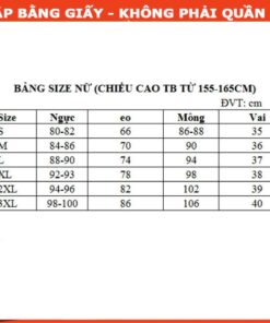 +3-4 XL : ngực 100-105cm; vai 40cm; eo 86-90cm; mông 106-110cm ; cao 155-160cm