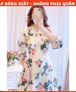 Rập giấy mã 1202 – đầm tay phồng thắt nơ