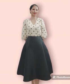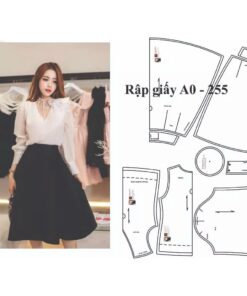 Rập được in từ giáy A0 – Dạng bảng vẽ, không phải sản phẩm. Rập đã được may thử, chân váy may vải tapta, gấm bố ( lưng liền, dây kéo bên hông), áo hợp với vải mềm.