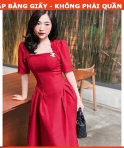 Rập đầm tay phồng, dài đầm qua gối, may dây kéo sau.