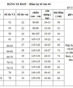 size 9 : 130-135cm; 33-36kg; ngực 70-72cm;