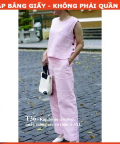Rập được in từ – Dạng bảng vẽ, không phải sản phẩm. Rập đã được may thử, hợp với vải đũi, linen. Quần dáng sau có thun.