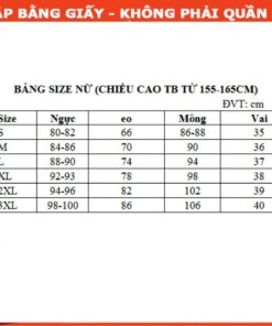 + XL : ngực 92cm; vai 38cm; eo 78cm; mông 98cm ; cao 155-160cm