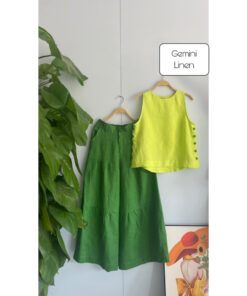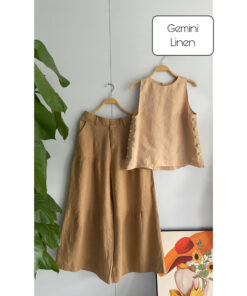 Rập nguyên bộ quần áo: áo sát nách, quần ống rộng may dây kéo