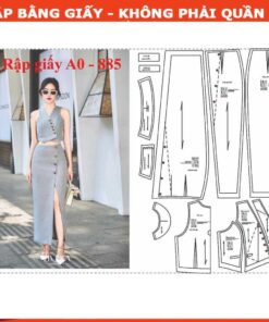 Rập 885 – nguyên set, chân váy bút chì lưng liền dài 90cm, áo ghi lê dài 40-43cm tùy sz