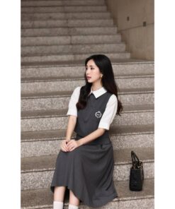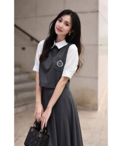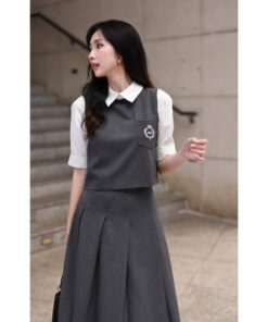 Rập mã 389 – set váy xếp ly, áo sơ mi croptop.