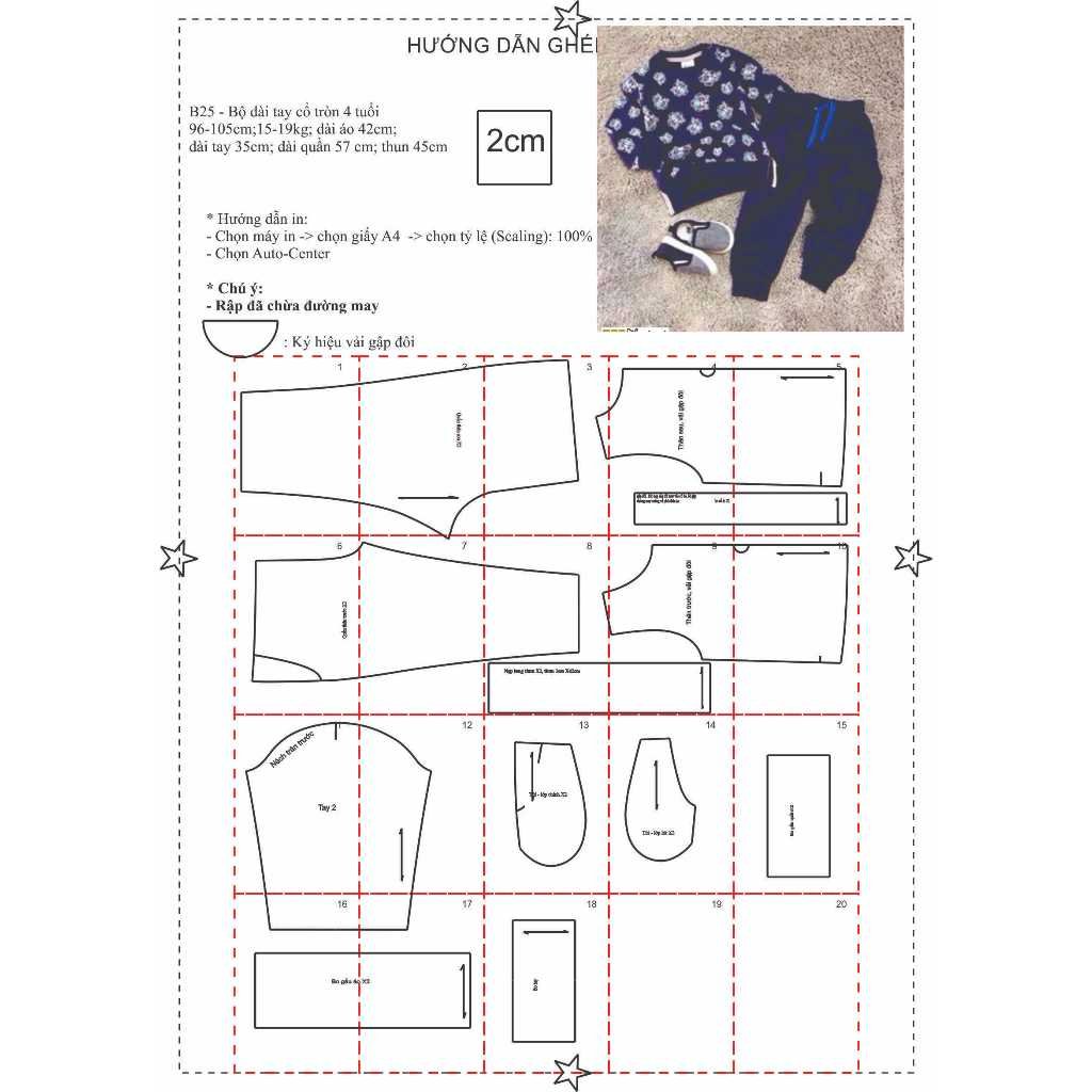RẬP ĐƯỢC IN TỪ giấy A0. Rập đã được may thử (Không phải xi măng, vàng, hay bìa cứng)