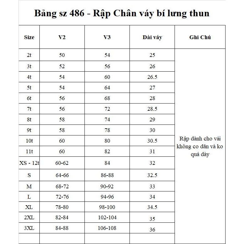 Rập giấy A0 486 – rập chân váy bí lưng thun – bên trong có lót quần