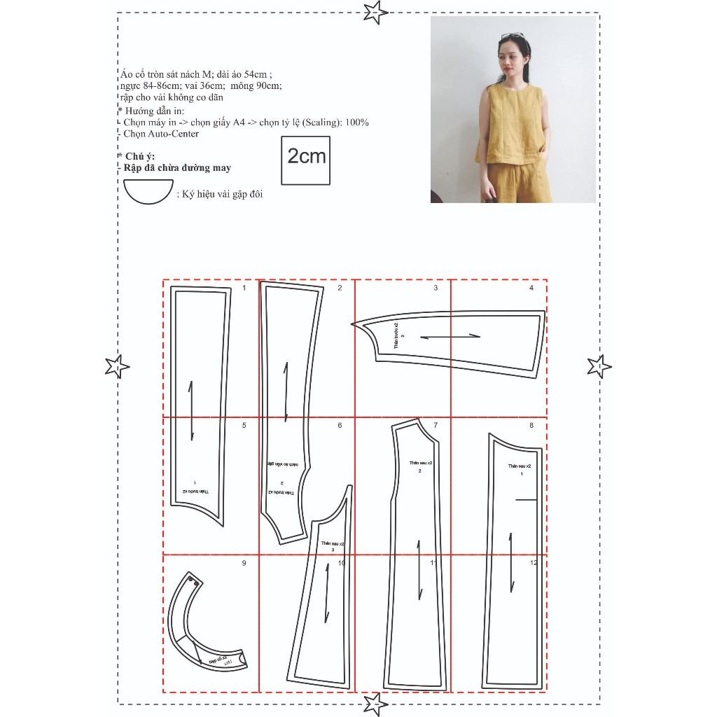 Rập được in từ giấy A0– Dạng bảng vẽ, không phải sản phẩm. Rập đã được may thử, hợp với vải thô, đũi, linen.