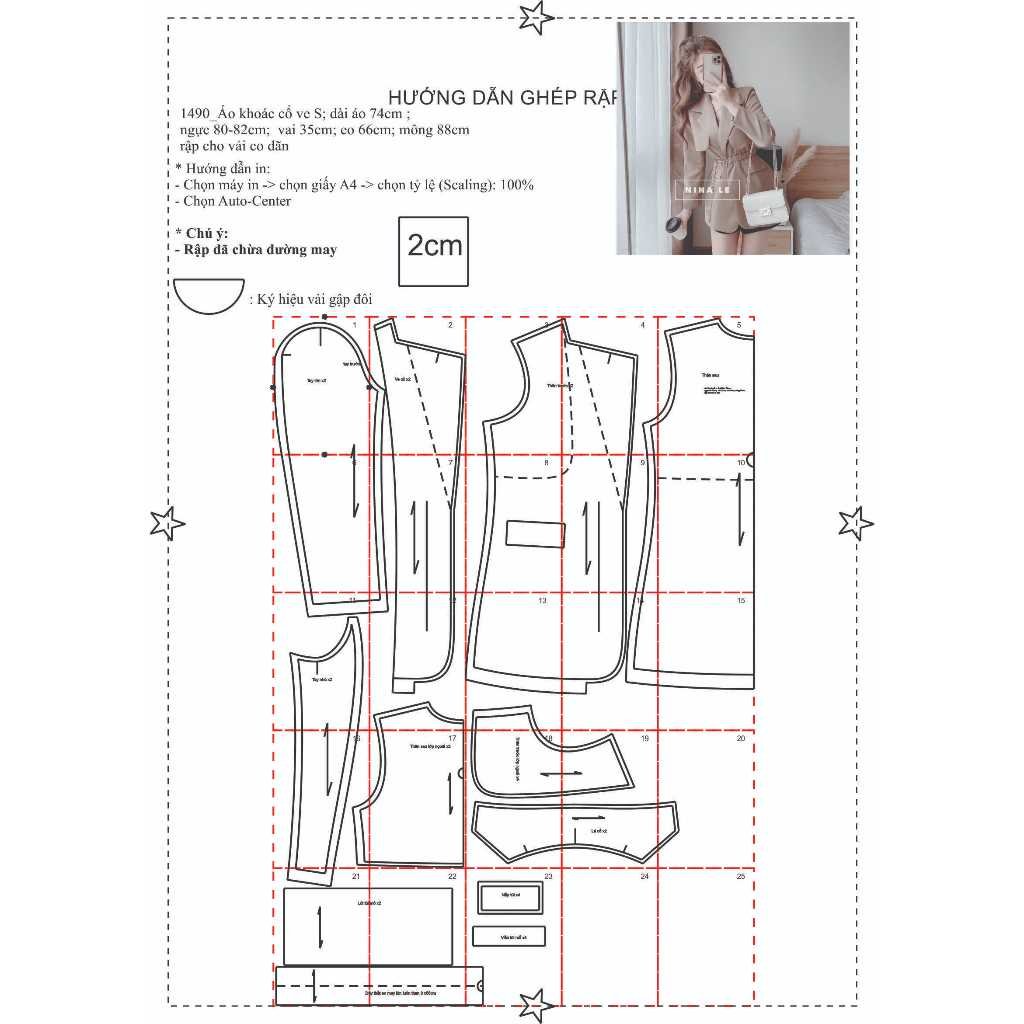 Rập được in từ giấy A0 – Dạng bảng vẽ, không phải sản phẩm. Rập đã được may thử, hợp với vải công sở – 1 lớp