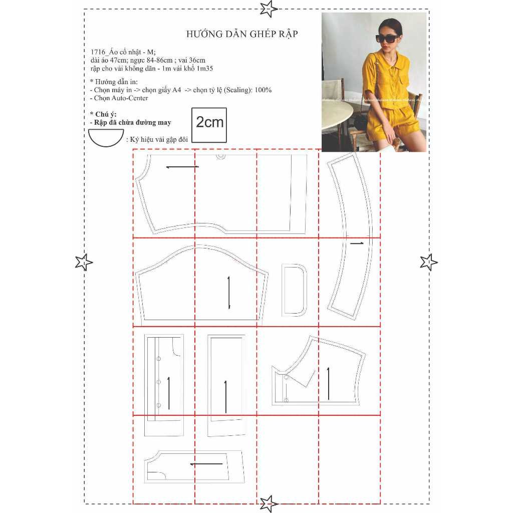 Rập được in từ giấy A0 – Dạng bảng vẽ, không phải sản phẩm. Rập đã được may thử, hợp với vải thô, đũi, linen.