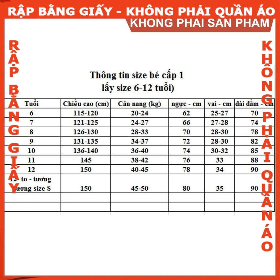 size 12: 145-150cm, 42-45kg, ngực 78cm