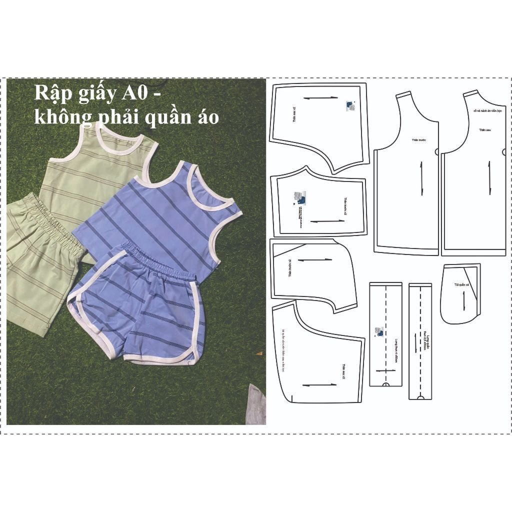 Rập giấy A0 B66 - Rập bộ ba lỗ bé trai 2 dáng quần