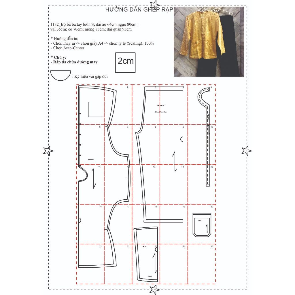 Rập được in từ – Dạng bảng vẽ, không phải sản phẩm. Rập đã được may thử, áo tay liền, quần lwung thun