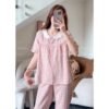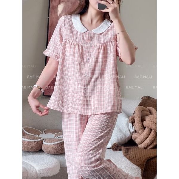 Rập bộ 1730 – áo cổ sen tay ngắn, quần suông lưng thun.