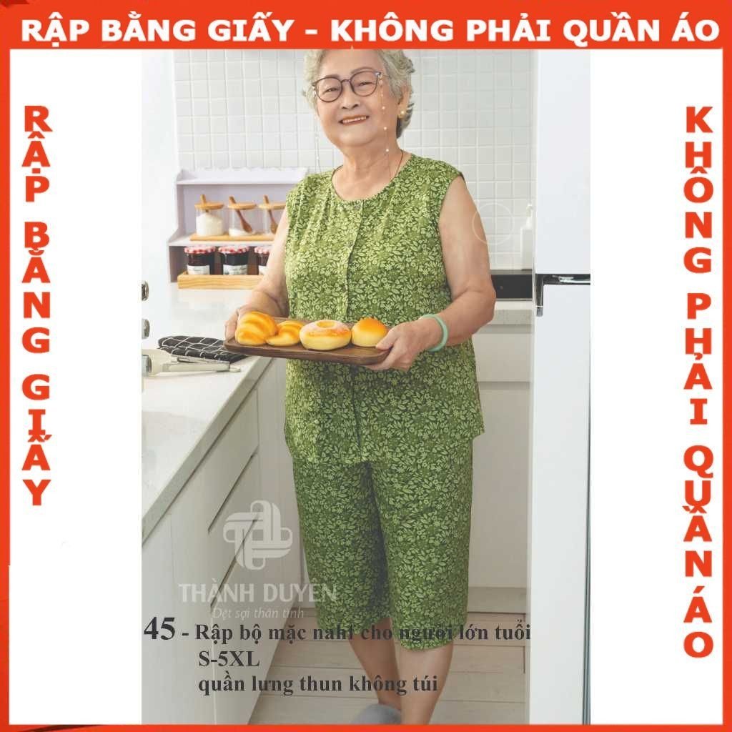 Rập được in từ – Dạng bảng vẽ, không phải sản phẩm. Rập đã được may thử, hợp với vải thô, lanh. Quần lưng thun 2 cm, không may túi, không nối hông. Cổ áo và nách viền bọc 1cm