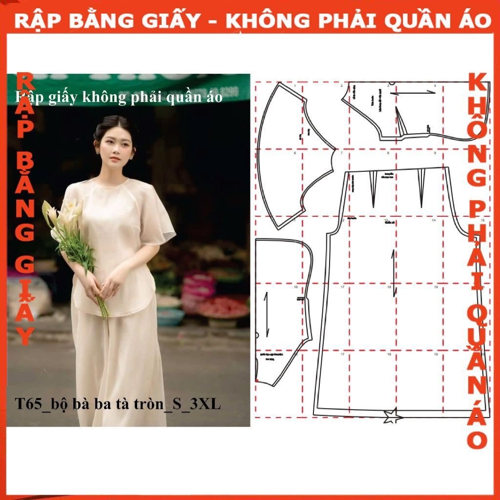 Rập được in từ – Dạng bảng vẽ, không phải sản phẩm. Rập đã được may thử. Hợp với vải: quần lụa, áo voan hoặc lụa đều được. Quần dáng giống quần áo dài, may dây kéo chìm. Có thể lụa chọn mua áo thôi cũng được.