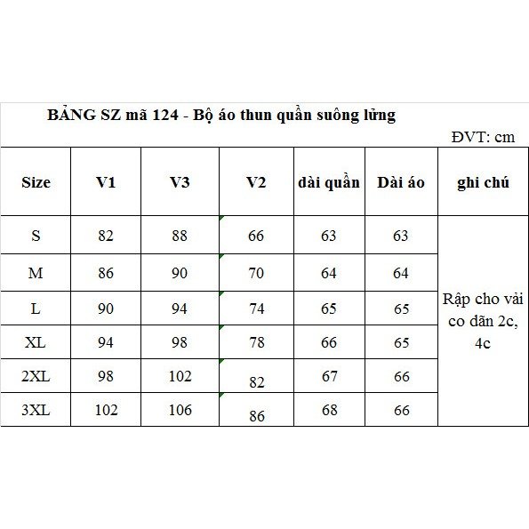 + 2 XL: ngực 96cm; vai 39cm; eo 82cm; mông 102cm