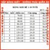 | Chiều cao | 1m55 - 1m59 | 1m60 - 1m65 | 1m66 - 1m72 | 1m72 - 1m77 | 1m77 - 1m83 | 1m84 - 1m92 |
