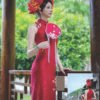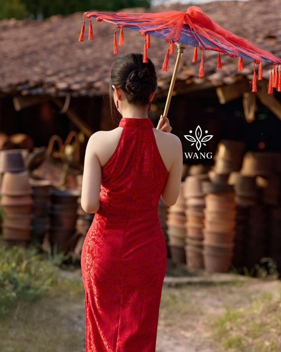 – Rập được ôp lên vải và cắt. Dài đầm 120cm