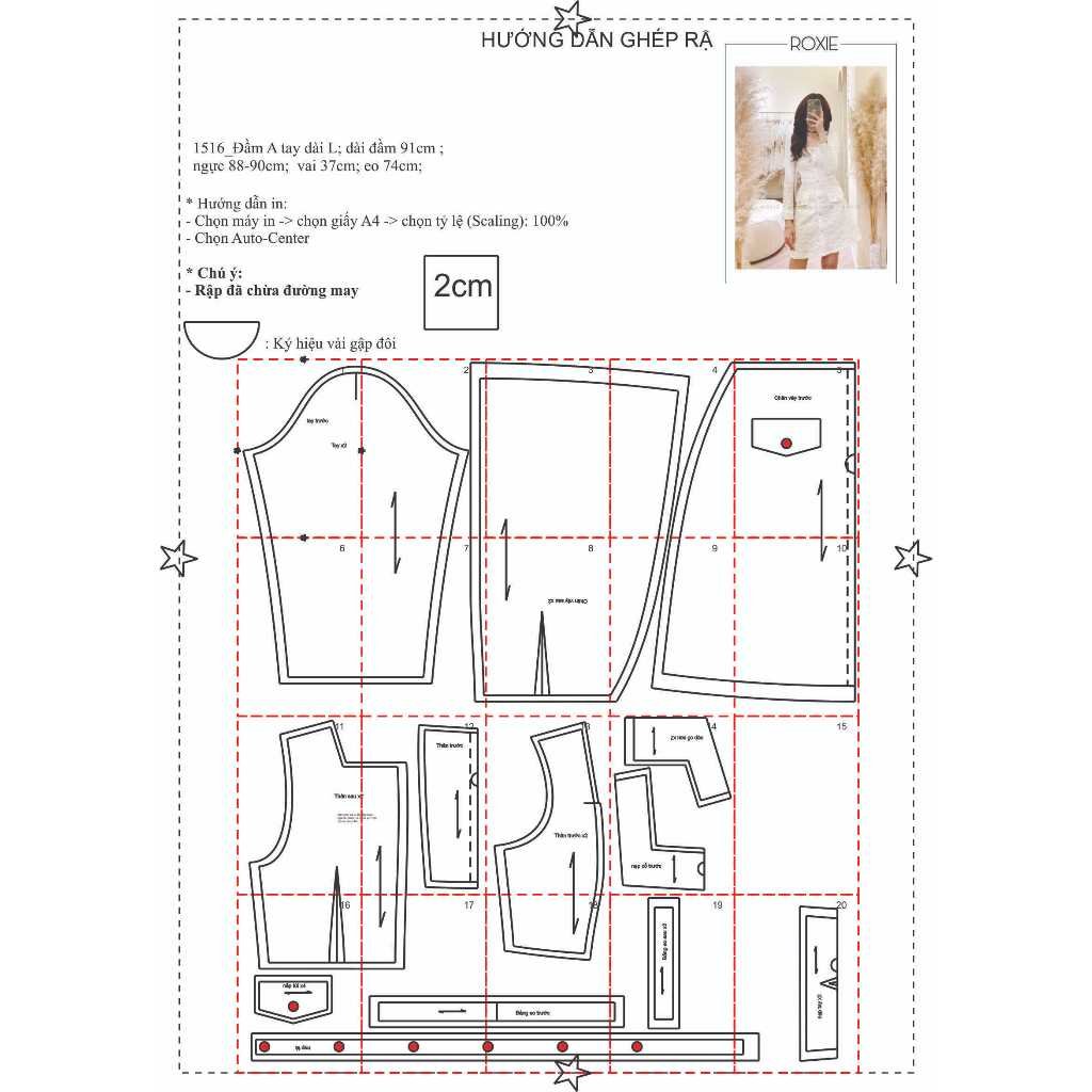 Rập được in từ giấy A0– Dạng bảng vẽ, không phải sản phẩm. Rập đã được may thử, hợp với vải công sở, gầm, dạ…