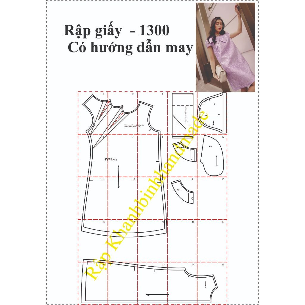 Rập được in từ – Dạng bảng vẽ, không phải sản phẩm. Rập đã được may thử, hợp với vải không co dãn – 1m5 vải khổ 1m4