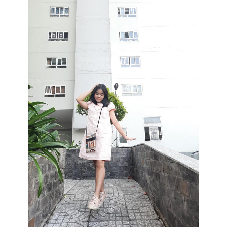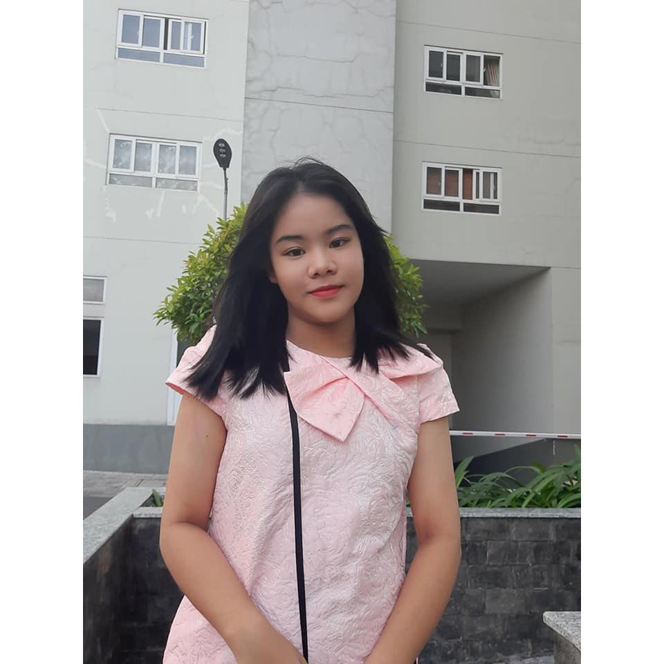 – Rập được ôp lên vải và cắt. bạn mẫu mặc đầm hồng chụp từ rập sz L – 158cm