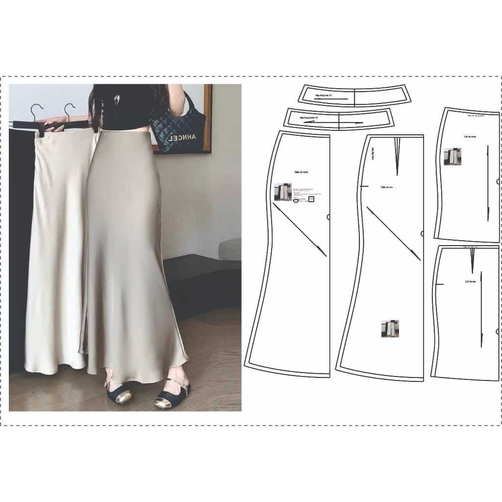 Rập Giấy A0 mã 113 – chân váy loe lưng liền, 2 lớp, may dây kéo 20cm bên hông.