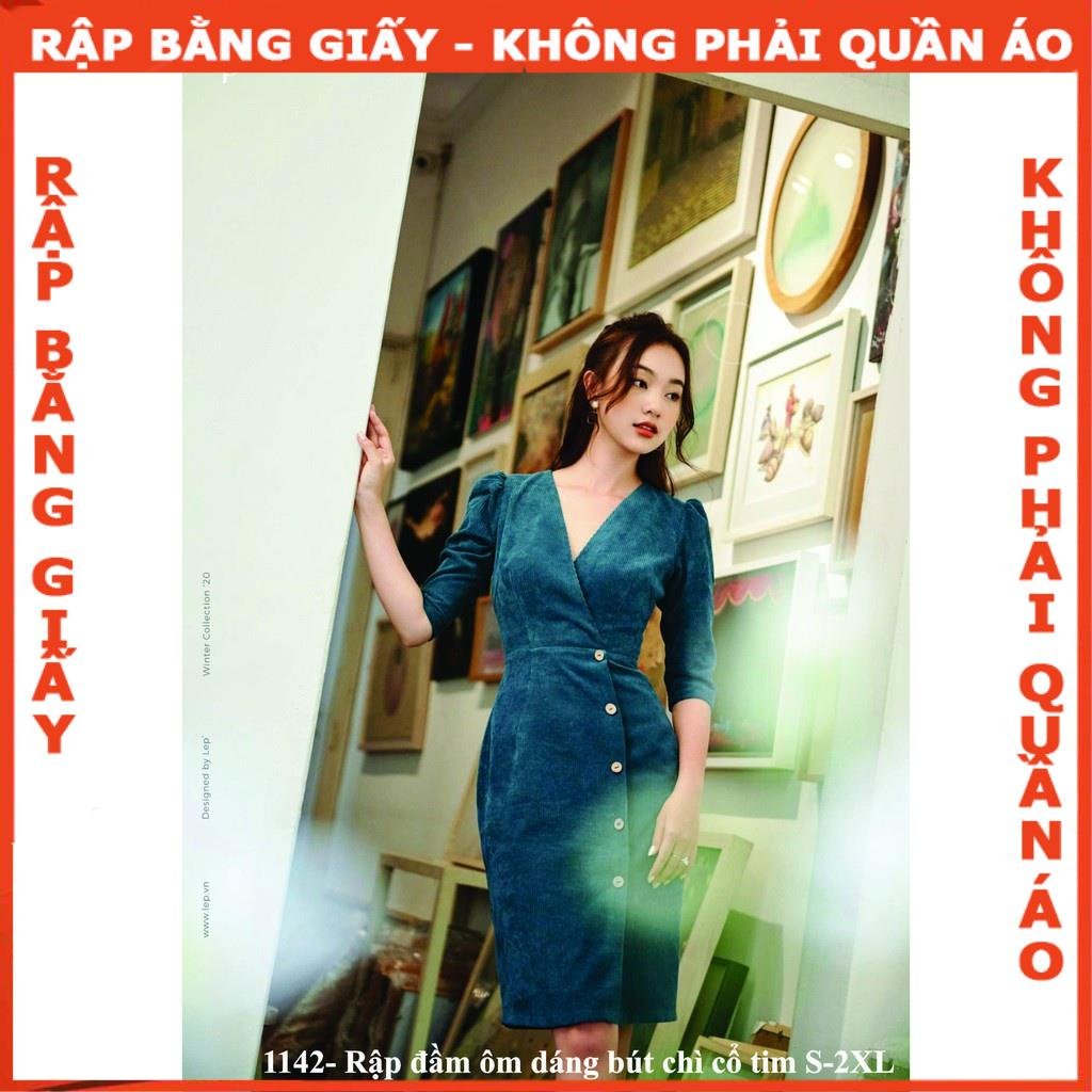 Rập giấy A0 mã 1142 - đầm dáng bút chì cổ tim