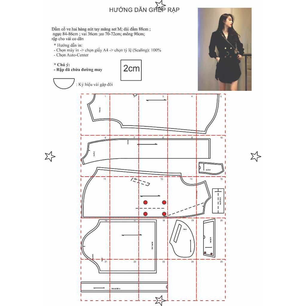 Rập được in từ giấy A0 – Dạng bảng vẽ, không phải sản phẩm. Rập đã được may thử, hợp với vải công sở.