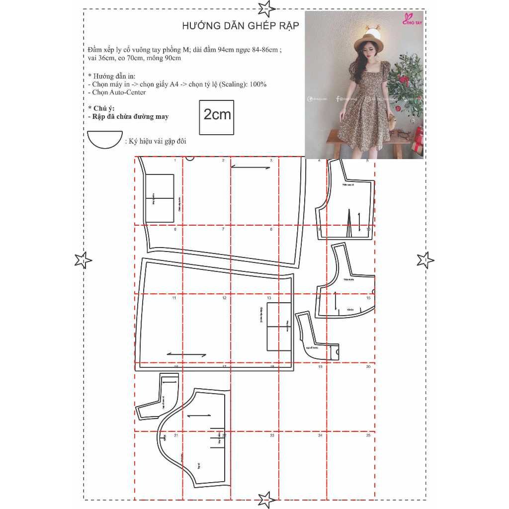 Rập giấy A0 mã 1224 – đầm cổ vuông