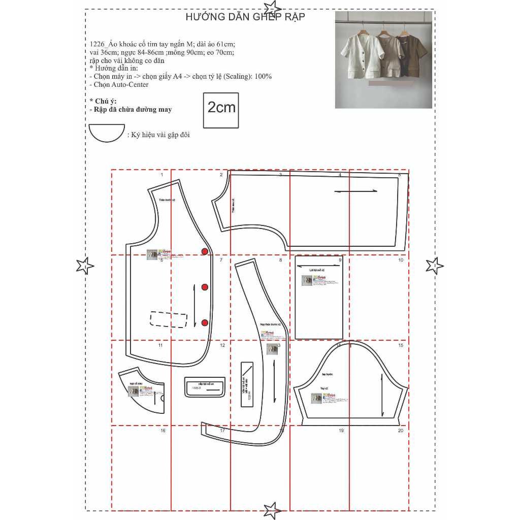 Rập giấy A0 mã 1226 – rập áo khoác 1 lớp tay ngắn