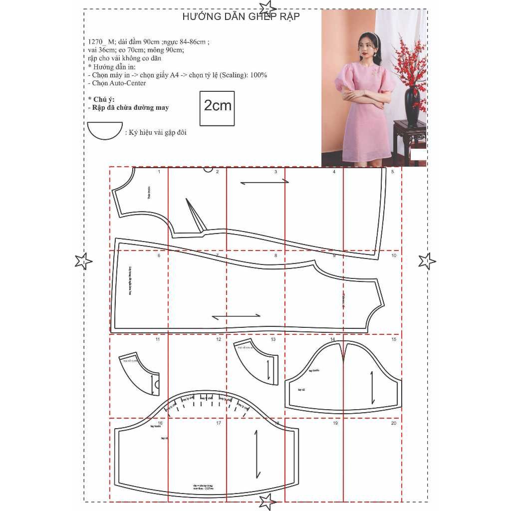 Rập giấy A0 mã 1270 – đầm suông tay lồng đèn