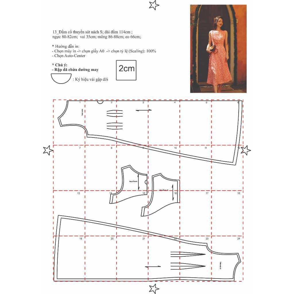 Rập giấy A0 mã 13 – đầm sát nách xếp eo