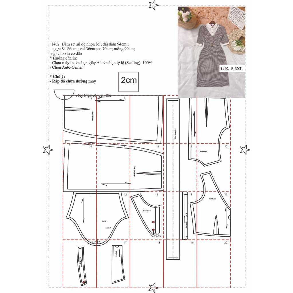 Rập giấy A0 mã 1402 – đầm sơ mi