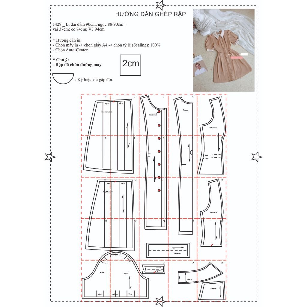 Rập được in từ giấy A0 – Dạng bảng vẽ, không phải sản phẩm. Rập đã được may thử, hợp với vải công sở