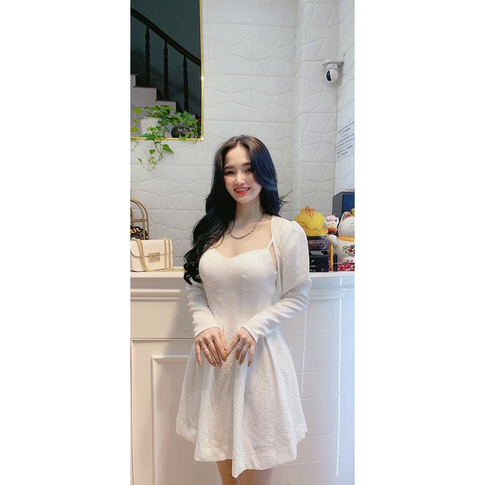 Rập mã 1449 – đầm cup ngực và áo khoác lửng.