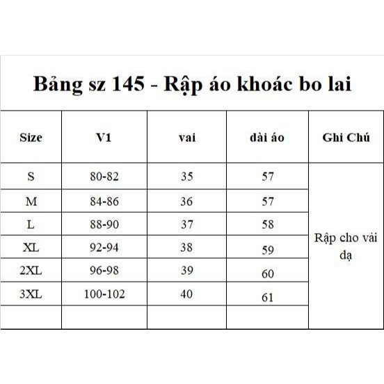 +3 XL: ngự c100-102cm, vai 40cm, V3:106cm