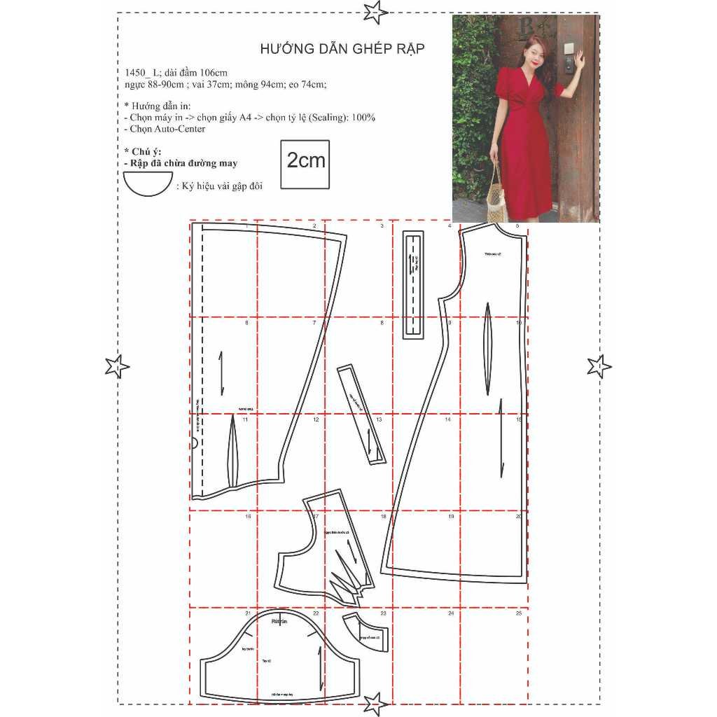 Rập giấy A0 mã 1450 – đầm xếp tay phồng