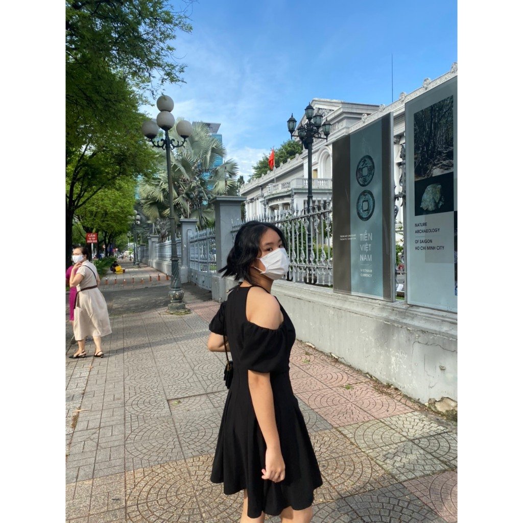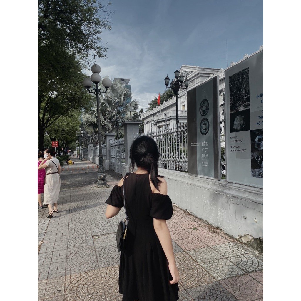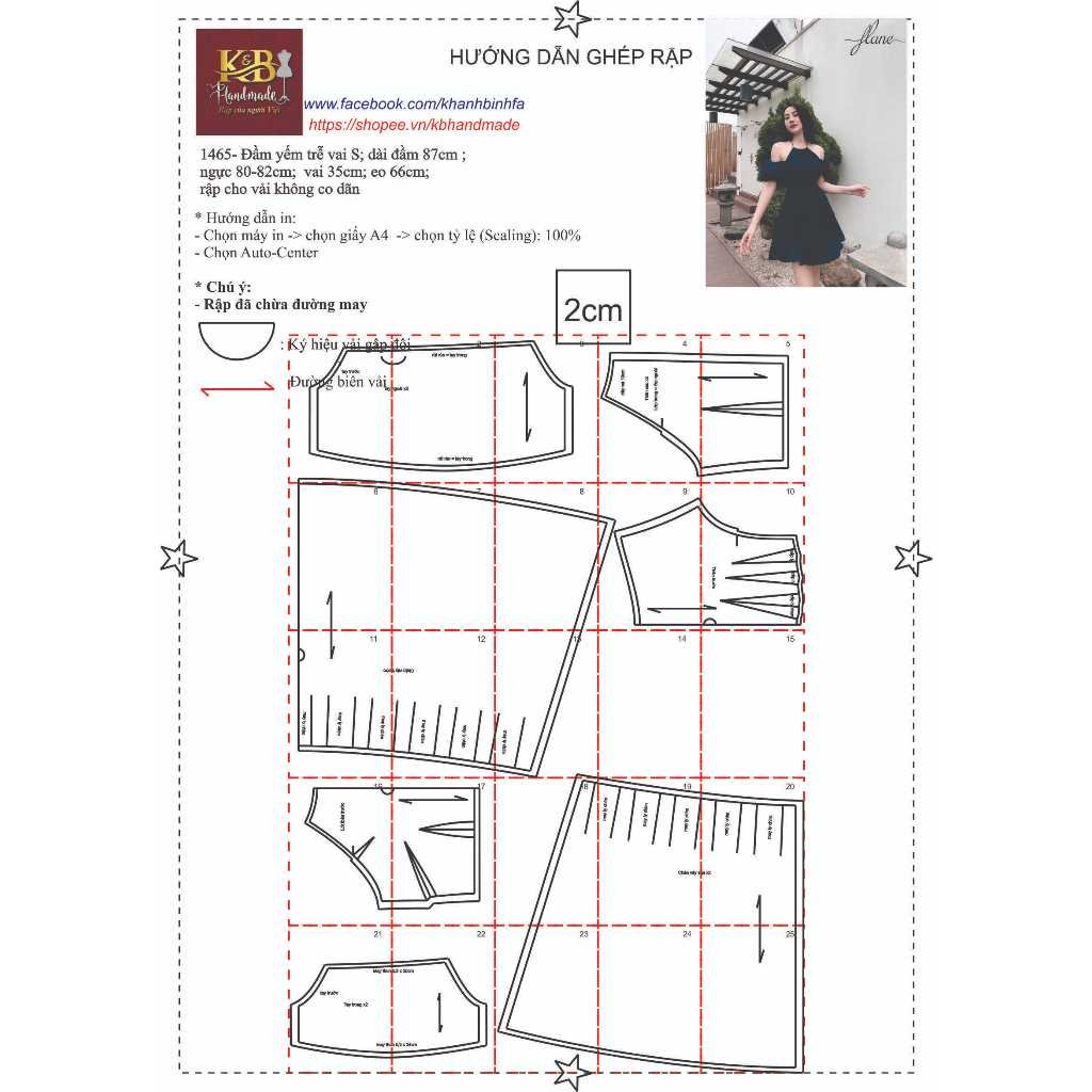 Rập mã 1465- đầm yếm hở vai