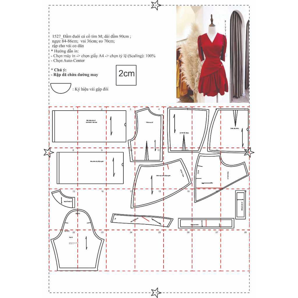 Rập giấy A0 mã 1527 – đầm đuôi cá