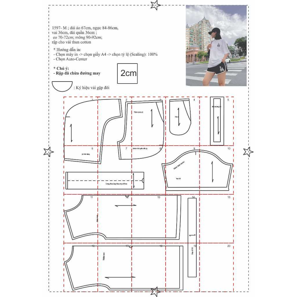 Rập được in từ giấy A0 – Dạng bảng vẽ, không phải sản phẩm. Rập đã được may thử – hợp với vải thun cotton