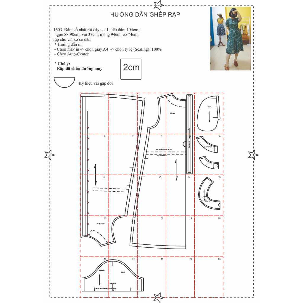 Rập được in từ giấy A0– Dạng bảng vẽ, không phải sản phẩm. Rập đã được may thử, hợp với vải thô, linen, đũi