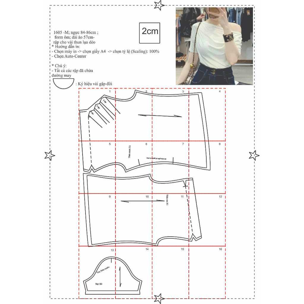 Rập giấy A0 mã 1605 - áo thun trễ vai