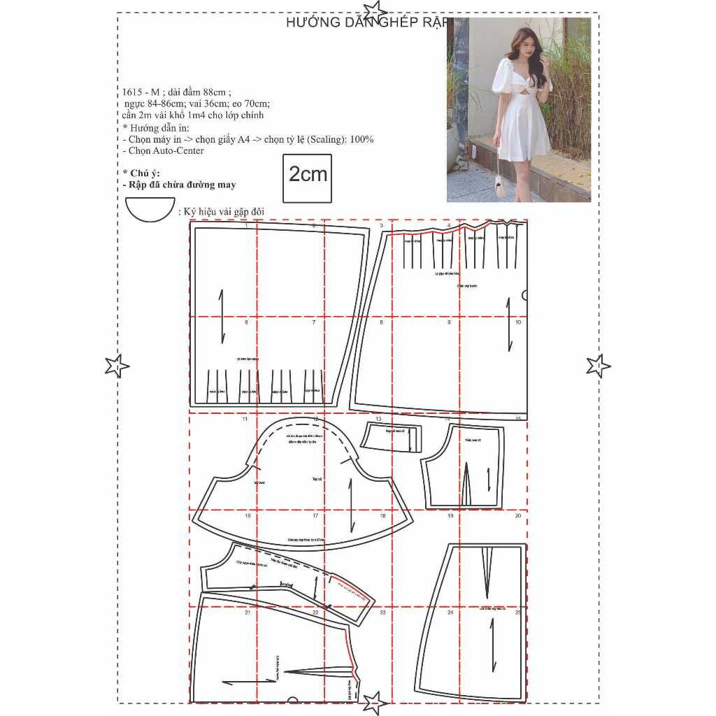 Rập được in từ giấy A0 – Dạng bảng vẽ, không phải sản phẩm. Rập đã được may thử, hợp với vải linen.