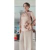 Rập nguyên bộ, quần suông lưng thun có túi.