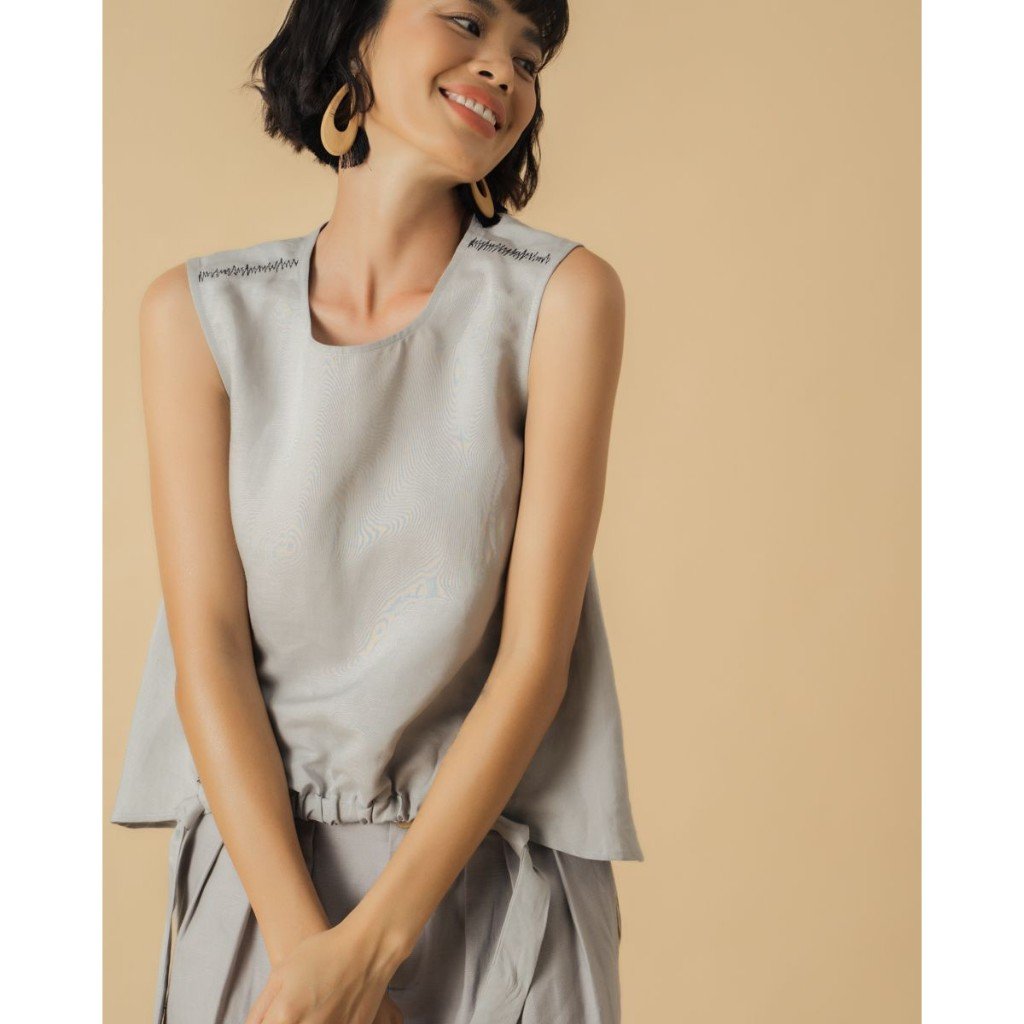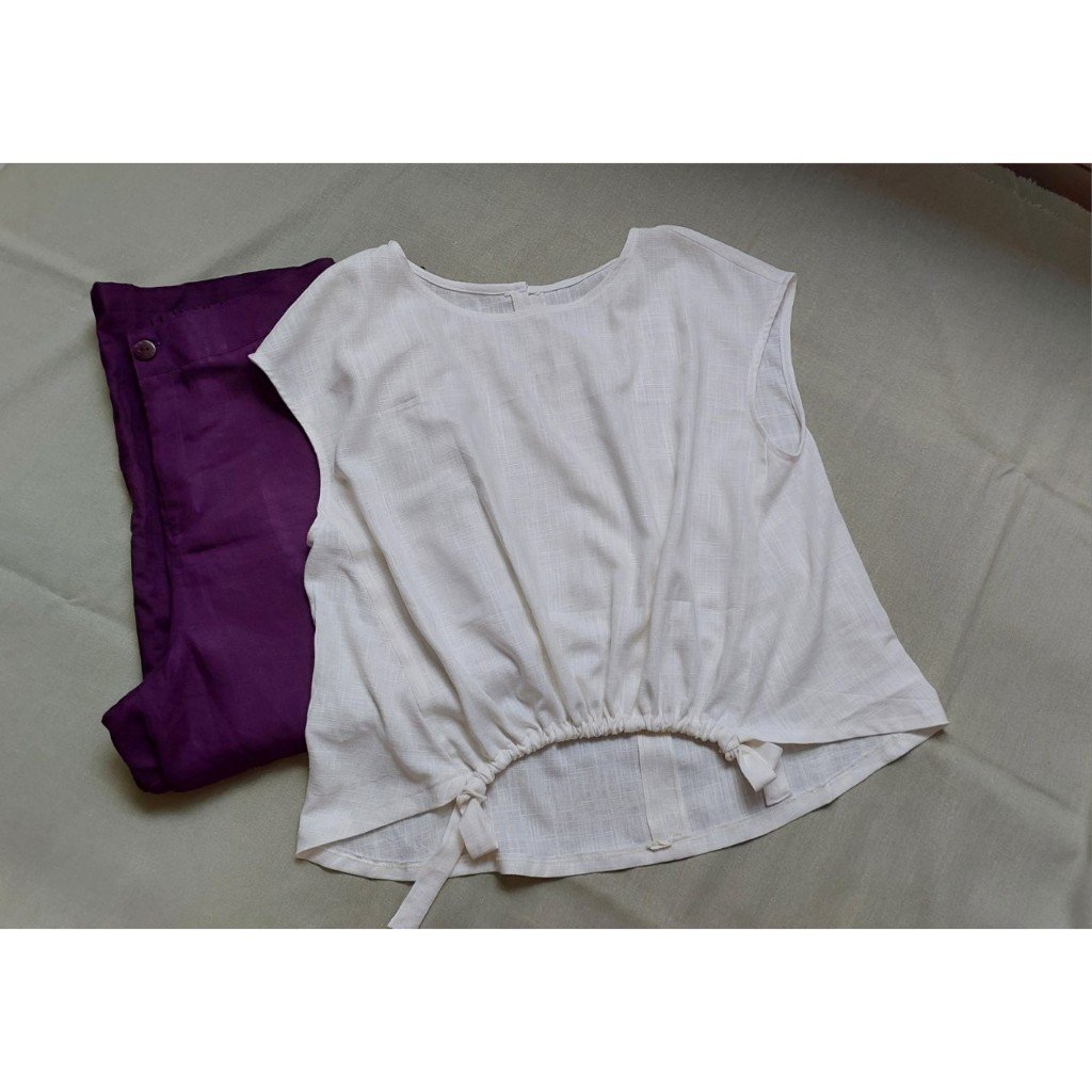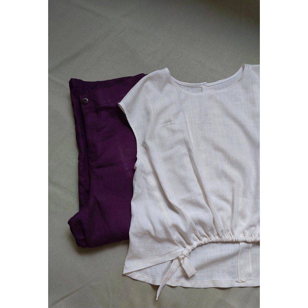 Rập gồm 2 dáng áo, quần suông lưng may dây kéo.